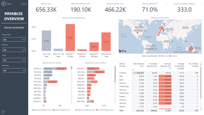 Optimise payments and discover trends with pre-designed Power BI Payables reports.