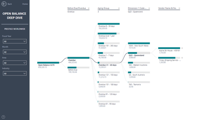 Decomposition Tree that presents a hierarchical view of your data and allows you to deep dive into your dimensions and attributes in any order.