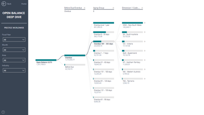 Decomposition Tree that presents a hierarchical view of your data and allows you to deep dive into your dimensions and attributes in any order.