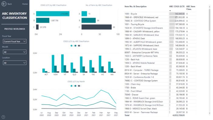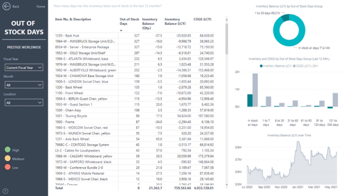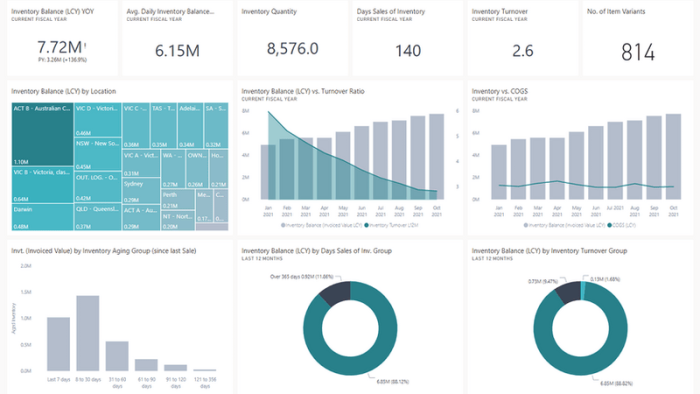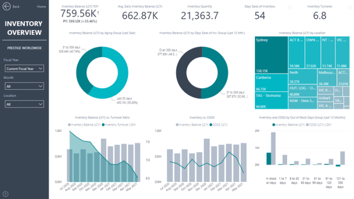 With the Business Central Inventory reports, we give you the insights to optimise your inventory. Our Inventory report suite brings all your data from Business Central together in a comprehensive way that allows you to view and analyse data, identify trends for all your items, item categories, resources, locations, item attributes and dimensions.