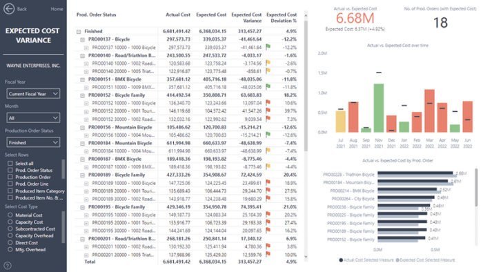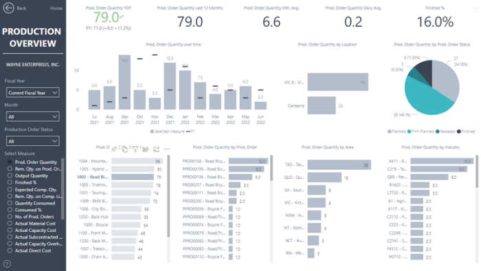 In addition to over 100 measures to view your production performance, you can slice and dice your data with 12 custom financial dimensions and 16 item attributes.