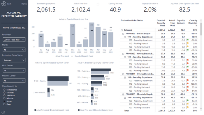 Do you know what’s happening with your production orders, are they on-time and in-full? What are the expected and actual consumption / output costs and quantities? What are your actual and expected capacity run times and set up times? Tracking all this has never been easy... until now!