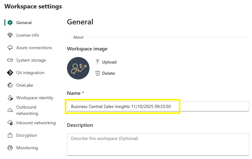 Every time you upgrade a Business Central Insights Power BI App, Power BI automatically appends a Date/Time suffix to the workspace name.