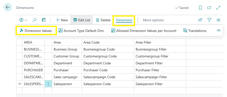 If there is already a dimension with Code = SALESPERSON (or a name you choose) → proceed.