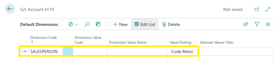This ensures that when sales are posted, they automatically include the Salesperson dimension value.