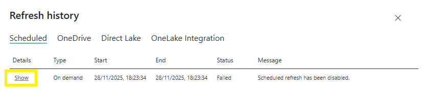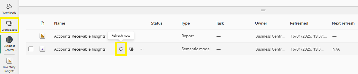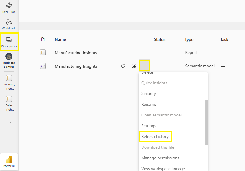 On the affected semantic model, select ellipsis (…) → Refresh now