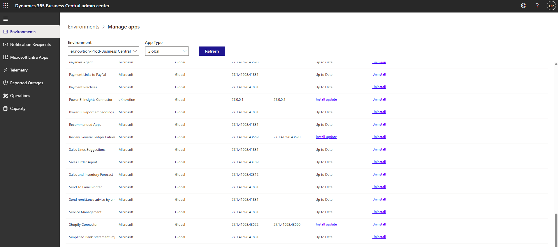 Upgrading via the Business Central Admin Center is the simplest and safest method. It upgrades the connector in place and preserves all data and settings. You can use this option only if you have access to the Admin Center.