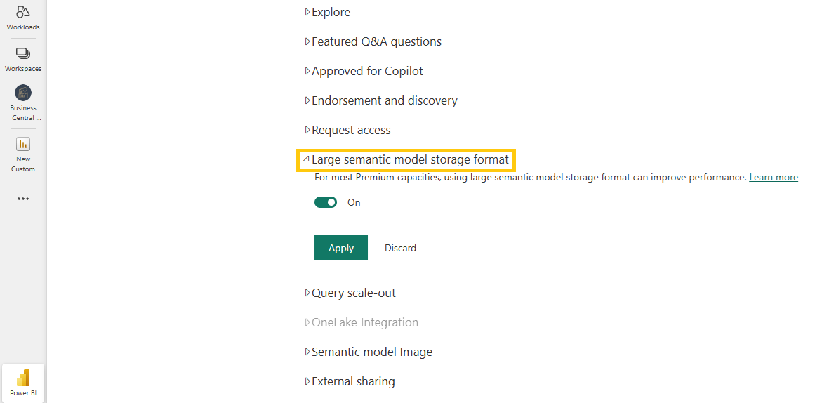 If you encounter an error during the upgrade, make sure that Large semantic model is disabled in your Power BI settings.