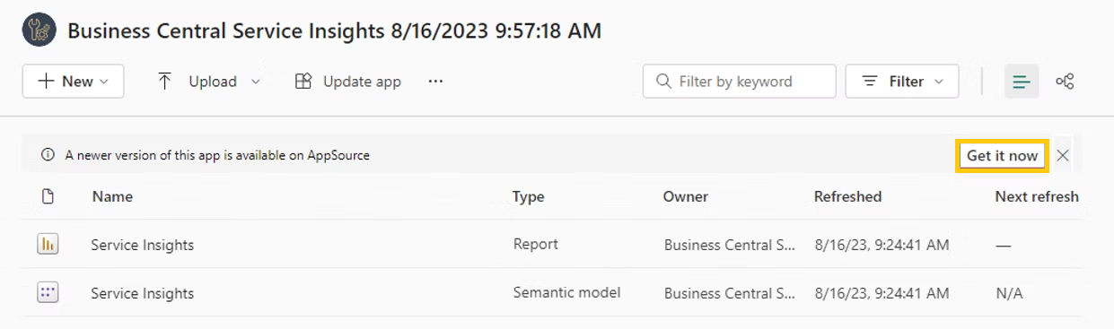 If your version is not up to date, you should see a Get it now button in the Power BI workspace.
